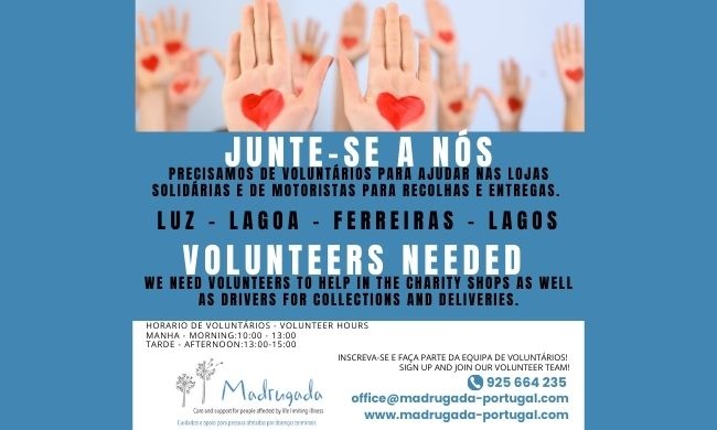 We welcome volunteers to donate a few hours a week in our shops located in Lagoa, Praia da Luz, Ferreiras and Lagos. We need volunteers for a variety of jobs. Not just on the sales floor helping our customers, but behind the scenes too. Sorting, pricing and more! We also need van drivers and helpers. If you want to help us to help others then PLEASE give us a call or stop by one of our shops or our Support Centre in Luz. Thank you!